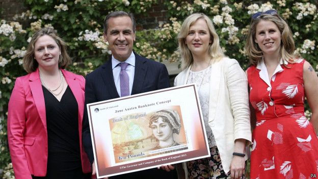 Campanhas nos EUA e no Canadá pedem que imagens de mulheres sejam estampadas em notas de dinheiro, e uma petição parecida no Reino Unido convenceu o Banco da Inglaterra a ilustrar a nota de 10 libras com o rosto da escritora Jane Austen a partir de 2017.